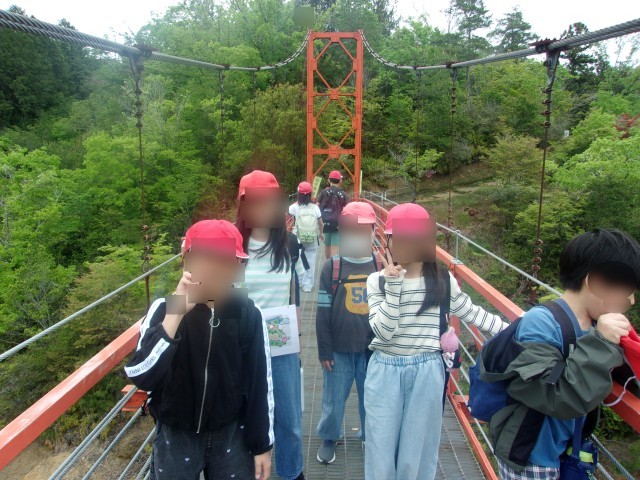 オリエンテーリングでは班の友達と協力してゴールを目指し、最後の丸尾橋にもほとんどの児童が渡っていました。