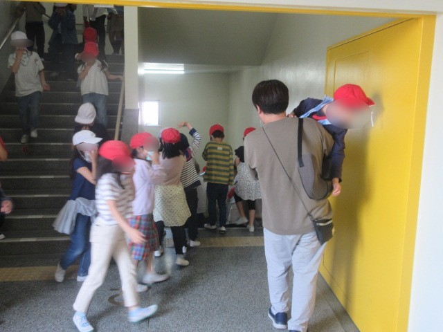事前に担任の先生から火災の怖さや避難の方法等を教わっていたためか、どの子も真剣に取り組んでいました。