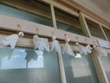 1年生の教室の廊下側の窓に、「10月30日(金)えんそく はれますように〔お日...