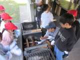 次は米係の活動です。 「とぎ水流すときは手を添えるんやで」 よくお手伝いしている...
