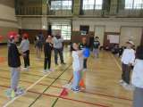 午前中のメインイベント、室内オリンピックの様子です。 各班対抗戦で、みんな競技が...
