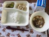 今日の献立は 鶏ごぼうご飯 とうふのみそ汁 焼きれんこん です。 鶏ごぼうご飯...