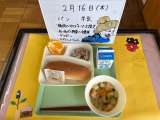 今日の献立は カツ丼 はくさいの甘酢あえ まっ茶大豆です。 カツ丼は鶏卵の個別対...