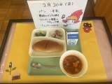 今日の献立は コッペパン 豚肉のオイスターソース焼き あつあげと野菜の中華煮 デ...