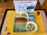 今日の献立は ごはん たらフライ すまし汁 こまつなのごまあえ です。 給食委...