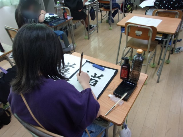 習字の学習で「道」という字に取り組みました。止め、はね、はらいに気を付けながら、一画一画ていねいに書こうとする姿が見られました。特に「しんにょう」の部分が難しく、バランスを取ることに苦戦していましたが...