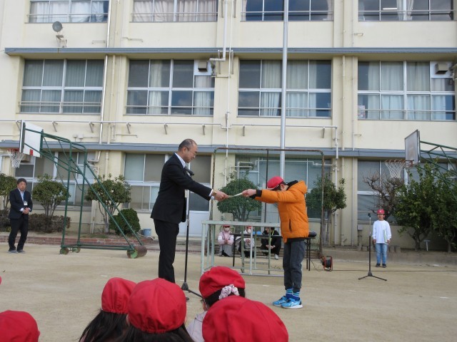 運動場には冷たい風が吹いていましたが、子どもたちは元気に集まり、どこか温かな空気が広がっていました。たくさんの表彰状が届いていたため、みんなでその頑張りをお祝いする時間となりました。ボッチャ大会に出場...
