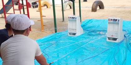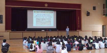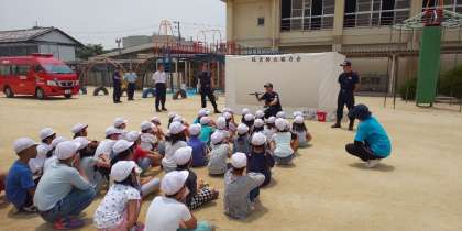 6月21日(金)の2・3時間目に運動場・講堂で防災教室を行いました。消防署や区役所の方々の話を聞いたり,水消火器や煙テントなどの体験活動をしたりして、児童は防災意識を高めることができました。