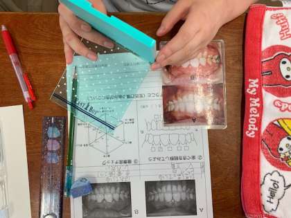 先日6年生の各教室で学校歯科医の島野先生、歯科衛生士の先生による歯と口の健康教室を行いました。噛むことの大切さやお菓子の食べ方、自分の歯のかみ合わせに合わして歯磨きを丁寧にすることを学びました。