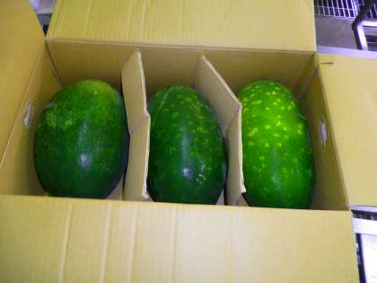 冬瓜は、インド・東南アジアが原産で7〜9月が旬の野菜です。冬まで保存できることから「冬」の「瓜」と書いて「とうがん」と読みます。今日は長崎県産で1個約3.5KGありました。しょうがの風味を利かせて鶏挽肉との煮物です。