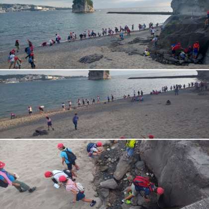 立派な研究施設、京都大学白浜水族館を存分に堪能した後は、せっかくなので、ちょっとだけ海辺でチャプチャプしました。