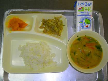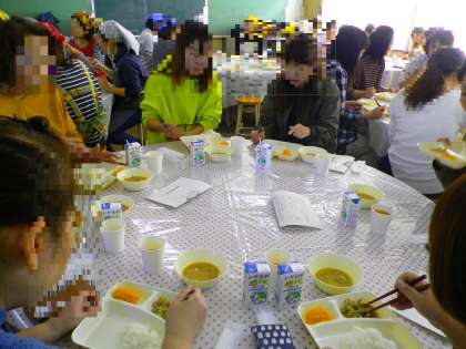 11月13日、PTA給食試食会が開催され38名の保護者の参加がありました。今日の給食は、ごはん・牛乳・豚肉とまいたけのいためもの・つみれ汁・かぼちゃういろうでした。栄養教諭より大阪市の給食について説明がありました。