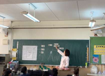 教室には、学校歯科医の島野先生、歯科衛生士の方々から歯や磨き方、食べ方について授業をしていただいた後、保健室へ移動しき、歯を強くするフッ化物を塗布していただきました。児童の感想には『うがいのときも上下左右、口の中で水をまわしてきれいにする』『おやつはダラダラ食べない。』『もう大人のはが多いから1本1本丁寧に磨く。』