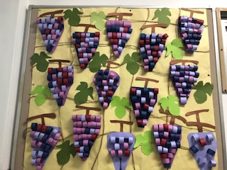 2学期最初のフレンドの制作は、画用紙でぶどうを作りました。みんな黙々と作っていました。おいしそうなぶどうがたくさんできあがりました。