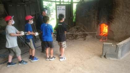 前に立つだけでも、顔が痛くなるほどの熱波が、窯の口から出てくるところでの作業です。