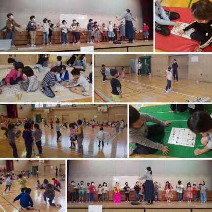 2年生は2限目に1年生は3限目に、グループに分かれていろいろな遊びや遊戯を教えてもらいました。