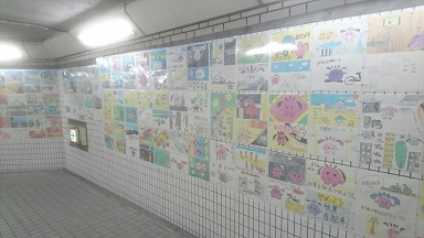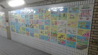 自転車放置防止ポスターへ応募した作品が、大阪メトロの地下道(4号出口方面)に掲示されています。