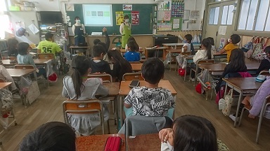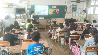 普段、入ることができない売り場の奥。例年なら見学に訪れるところですが、コロナウイルス感染症の影響で、出前授業の形になりました。