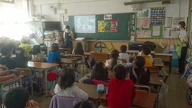 スーパー「ライフ」の方に来ていただき、売り場からは見ることができない裏方のお仕事を紹介していただきました。