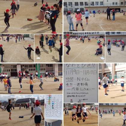 そこで本校では、毎年体づくりの習慣と意識化を図って「なわとび週間」を設けています。今年度は感染防止のために、偶数学年と奇数学年に分けて2週間にわたって実施することにしました。体育委員会の児童中心に、積極的に取り組んでいます。