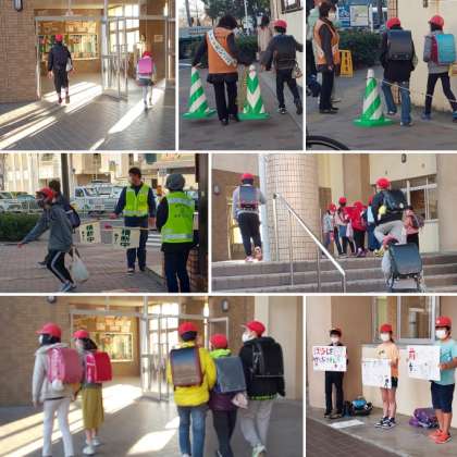 また、PTAの方々が、地下道からの上り口を安全に誘導してくださっています。