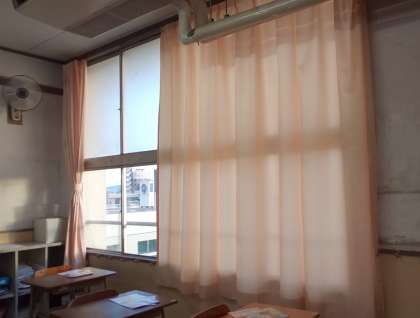教室のカーテンもかなり年季が入っており、教室の歴史を物語っていましたが、少しずつ交換していくことにしました。今度のカーテンは、淡いオレンジ色の温かみのある優しい色です。