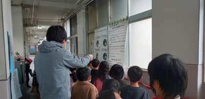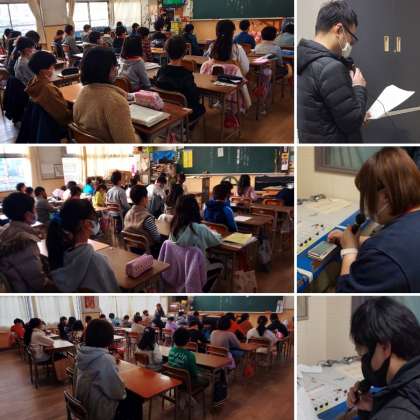 しばらくすると、早速に校長室前の掲示を活用して、学級指導を行っているクラスを見かけました。本校の指導の素晴らしいことは、式での講話や児童朝会での講話を、しっかりと学級指導につなげて活かしているところです。