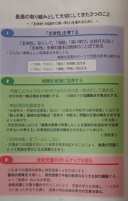 本校の子どもたちの学力の定着と向上をめざして取り組んできましたこれまでの研究実践を「長居の教育−算数科編−」にまとめました。