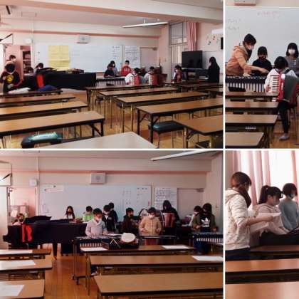 校内をまわると、休み時間にもかかわらず合奏が聞こえてきました。