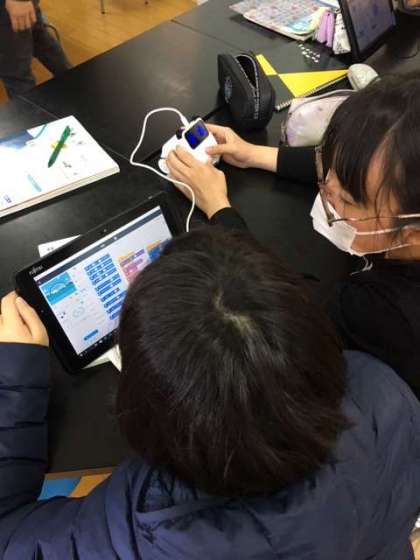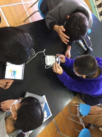 2学期にも学習しましたが、今回は自分たちで作ったプログラムで実際にロボットを動かすことに挑戦しました。