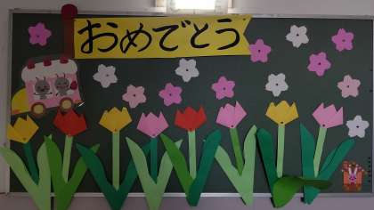 明日は卒業式。卒業生に向けて、掲示板に5年生からお祝いのメッセージを掲示しました。よろこんでもらえるとうれしいです。長居小学校で過ごす最後の1日、思い出をたくさんつくってください。素晴らしい卒業式になると良いですね。(5年生より)