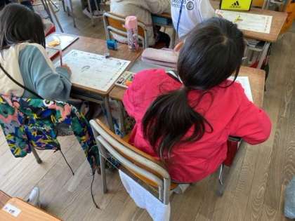 今日は各クラスで自己紹介カードを書きました。初めて同じクラスになった子もいたため、友達の新たな一面に気づくことができました。