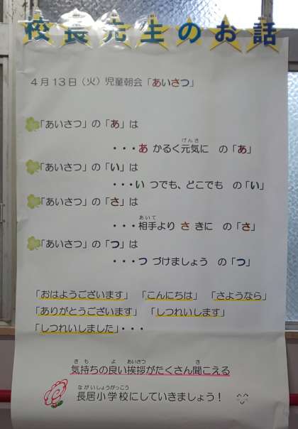 気持ちの良い挨拶がたくさん聞こえる長居小学校にしていきましょう!