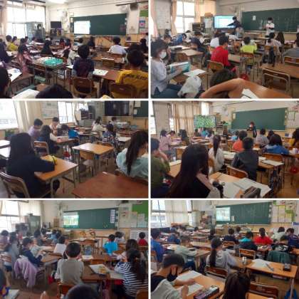 写真は3・4年生の様子です。1限目は、NHK for School を活用して学習しているクラスがありました。