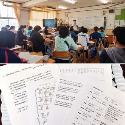 本校で通級教室(ことばの教室)の担当をしている久保田先生(指導教諭)が講師となって、特別支援教育に係る研修会を行いました。