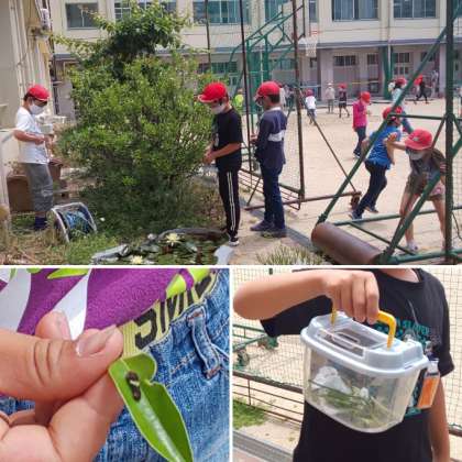 「校長先生!幼虫いっぱい見つけたで!!」