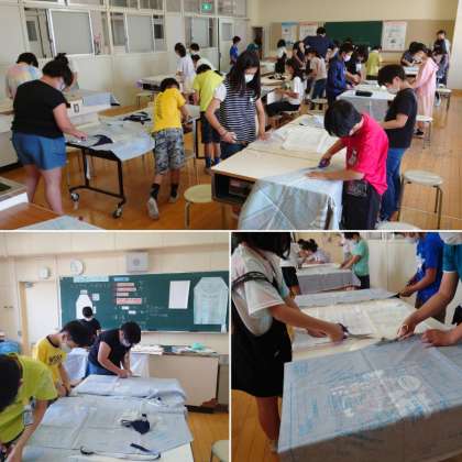 一人一人が真剣な表情で布の裁断に取り組んでいました。