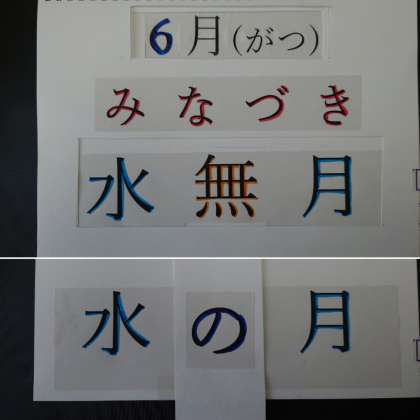 6月のことを、昔の日本の言い方で、「水無月」と書きます。「水」という漢字と「無い」という意味の漢字と「月」ですね。