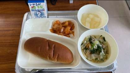 今日のメニューのえびのチリソースは、配膳された時から食欲をそそるいいにおいがします。口に入れるととてもスパイシーでおいしかったのですが、辛さが苦手な私が食べて、「少しスパイシーだな」と感じたので、ひょっとすると低学年の辛さが苦手な子どもにとっては、辛すぎなかったか少し心配しました。