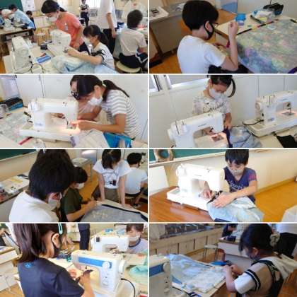 一人一人が真剣な表情で布のしつけ縫いやミシンの操作に取り組んでいました。