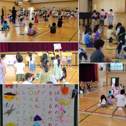 始めと終わりは体育館に集まって、みんなでゲームをしたり、ルール説明をしたりします。