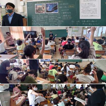 5時限目は、本校の子どもたちの学力の定着と向上を全教員でめざすため、大阪市教育センター総括指導主事の石田 かおり先生と同じく教育センター指導教諭の広瀬 章子先生をお招きして、6年2組の教室で1回目の校内研究授業を行いました。