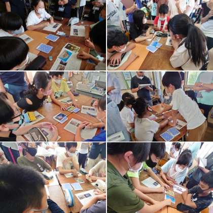 児童は、図工のアートカードを用いて、様々な美術作品の表現方法の違いや特徴による良さを感じ取ったり、形や色、材質について自分のイメージを膨らませたりしていました。また、作品の特徴をグループで話し合うことで、友だちの見方を知ったり、美術作品のイメージを広げたりして、学びをさらに深めていました。