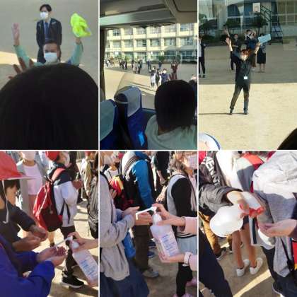 保護者の皆様、教職員の皆さん、早朝からのお見送りありがとうございます。
