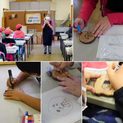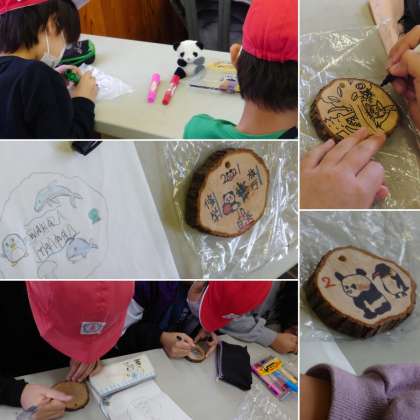 かしの木プレートにそれぞれの思い出をペイントしました。