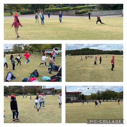 大縄、ボール遊び、鬼ごっこ、フリスビー等、広い場所で思い切り体を動かして遊んでます。