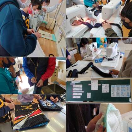 初めてのミシンに戸惑いながらも一生懸命に取り組んでいます。