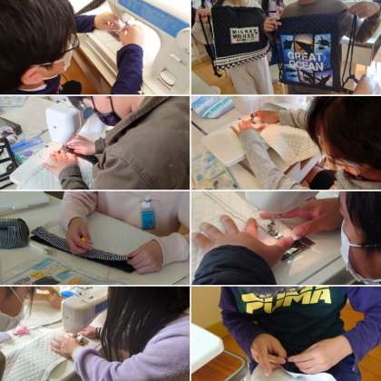 好きな柄を選んでナップサックを作製しています。