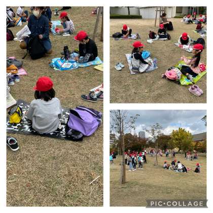 お弁当タイムです。 密にならないよう間を空けて食べます。