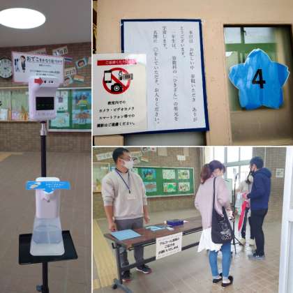 また、今回もPTAで購入していただきました、体温を計測し消毒液を自動で噴霧する「オートディスペンサー」のお陰で、受け付けの時間短縮が図れました。